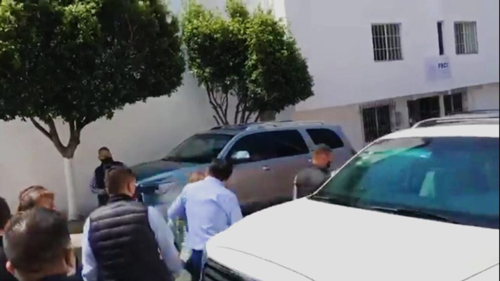 A lo cual, los guardaespaldas personales de la Gobernadora intervinieron agrupándose para alejar a Cuéllar Cisneros de los comunicadores empujándolos para evitar más preguntas.