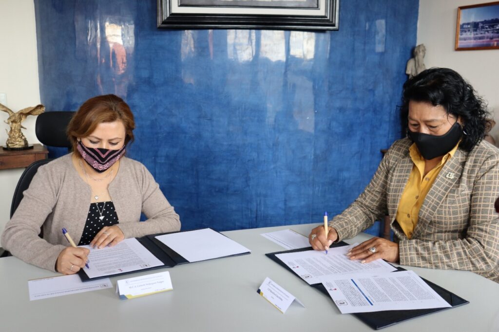 La síndico municipal de Tetla de la Solidaridad, Lizbeth Velázquez Vargas, la presidenta honorifica del Sistema Municipal para el Desarrollo Integral de la Familia (SMDIF), Catalina Vargas Pérez, en representación del Presidente Municipal, Andrés Ramírez Galicia, signaron el convenio de colaboración con la Rectora de la Universidad Metropolitana de Tlaxcala, Marcelina Cruz Ordaz.