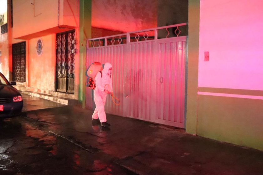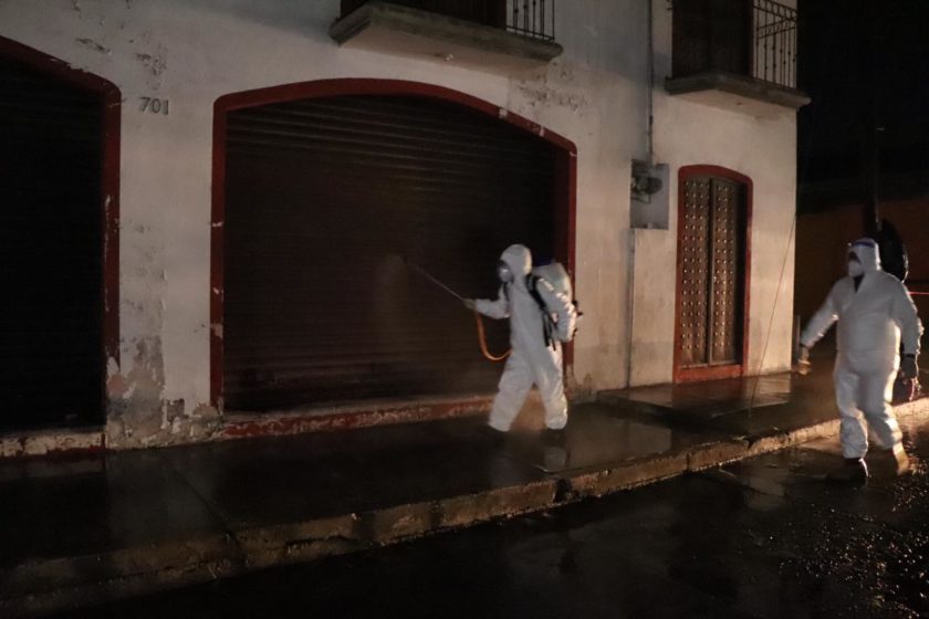 Huamantla, Tlax.- Con la finalidad de frenar la propagación y que incremente la curva de contagios por COVID-19 en el municipio de Huamantla, la noche de este miércoles el Presidente Municipal Jorge Sánchez Jasso, giró instrucciones para que una brigada especial realizara la sanitización de calles del centro de la ciudad, al recordar que en días pasados se desinfectó el mercado municipal, el parque Juárez, así como las calles Aldama, Allende, Morelos, y Zaragoza.