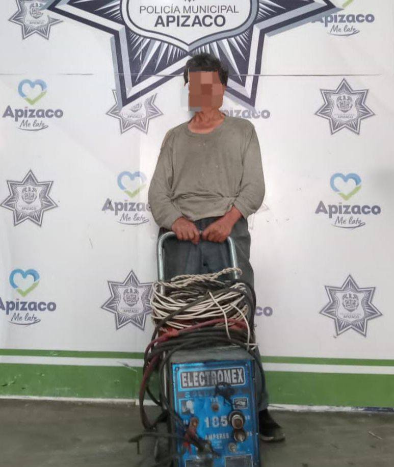 Oficiales del Grupo Especial de Operaciones (GEO) de la Dirección de Seguridad Pública Municipal, Vialidad y Transporte de Apizaco, detuvieron a un hombre de 59 años de edad luego de ser señalado de cometer el robo de una soldadora, en la Colonia “La Soledad”.