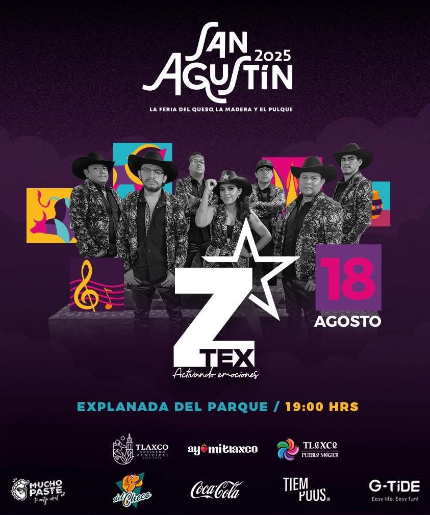 La explanada del parque de Tlaxco será el escenario de una noche llena de energía y baile con la presentación de Grupo ZTEX, este 18 de agosto a las 7:00 PM.