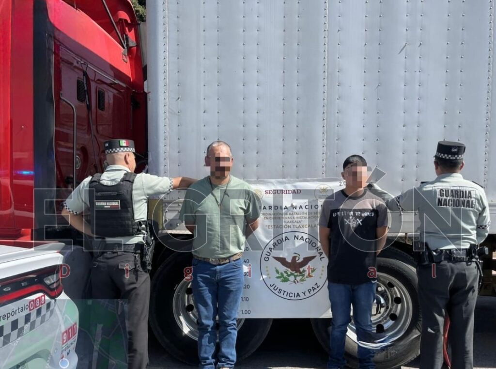 El aseguramiento ocurrió sobre la carretera Vía Corta Chiautempan–Puebla, a la altura del municipio de La Magdalena Tlaltelulco, donde también se concretó la detención de dos hombres de aproximadamente 50 y 20 años de edad, quienes viajaban a bordo de la pesada unidad.