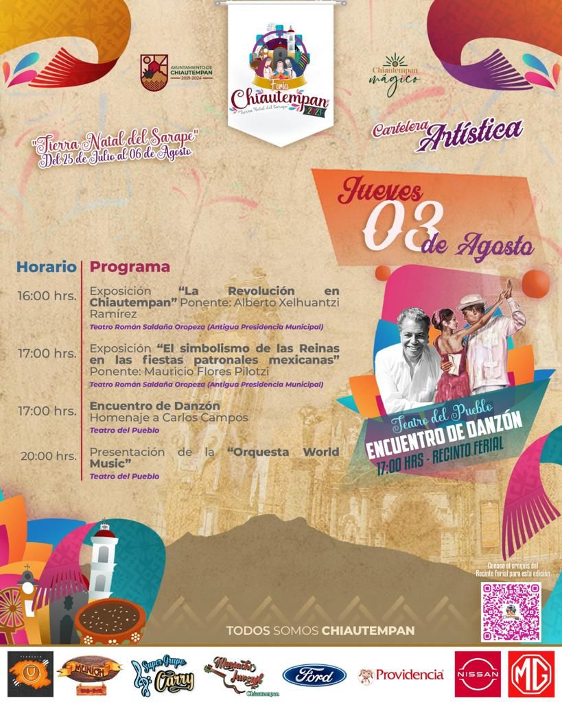 Este jueves, como parte de las actividades culturales y artísticas contempladas en la Feria de Chiautempan 2023, habrá un Festival de Danzón a las 17:00 horas en homenaje a Carlos Campos, en el Teatro del Pueblo ubicado en el Recinto Ferial.