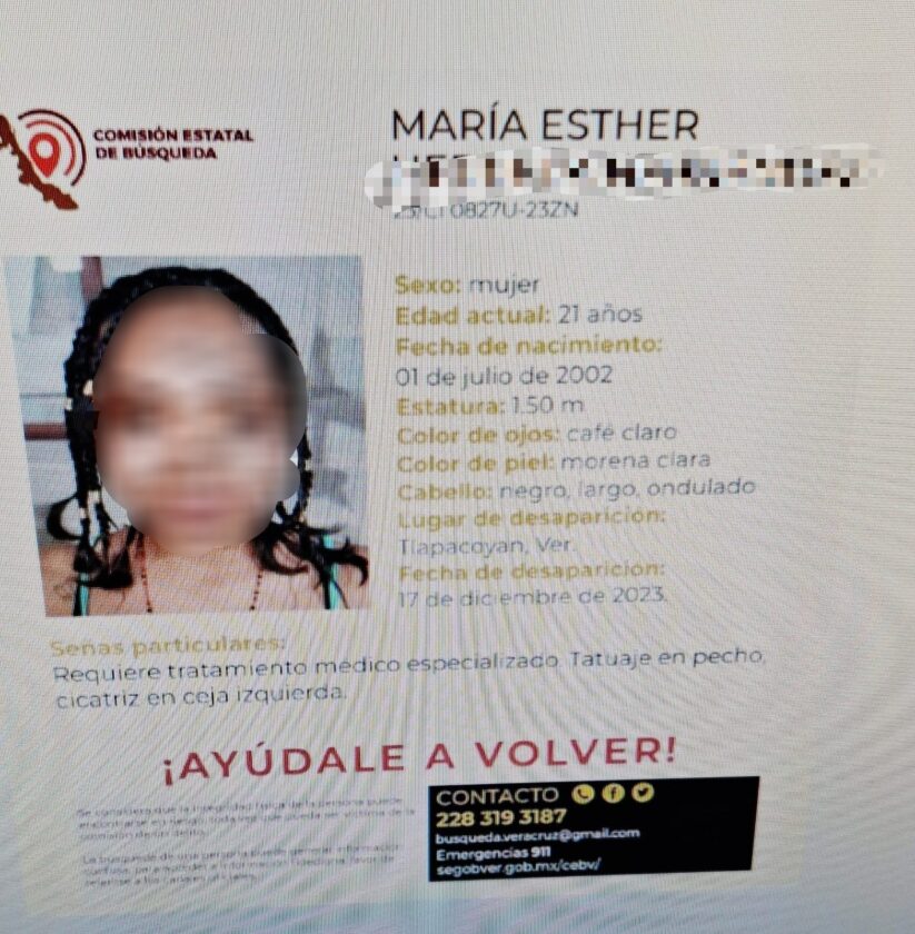 En el momento de su desaparición, el 17 de diciembre de 2023, María Esther tenía 21 años y se encontraba bajo tratamiento médico especializado, según la ficha de búsqueda emitida por la Comisión Estatal de Búsqueda de Veracruz.