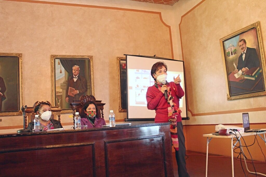 A la ponencia que se impartió la mañana de este miércoles, acudieron las titulares de los institutos Estatal y Municipal de la Mujer (IEM), Margarita Cisneros Tzoni, y Yazmín Calderón, respectivamente.