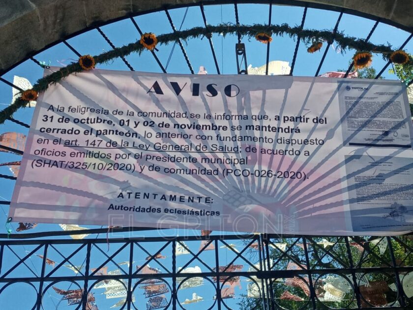 Policías de Totolac implementaron un operativo de supervisión en los panteones de las nueve comunidades de la demarcación, con el fin de evitar que las personas ingresen o se aglomeren en las inmediaciones, ya que es una medida Federal, Estatal, Municipal y eclesiástica, la prohibición del acceso a los campos santos, como medida preventiva por la pandemia de Covid-19.