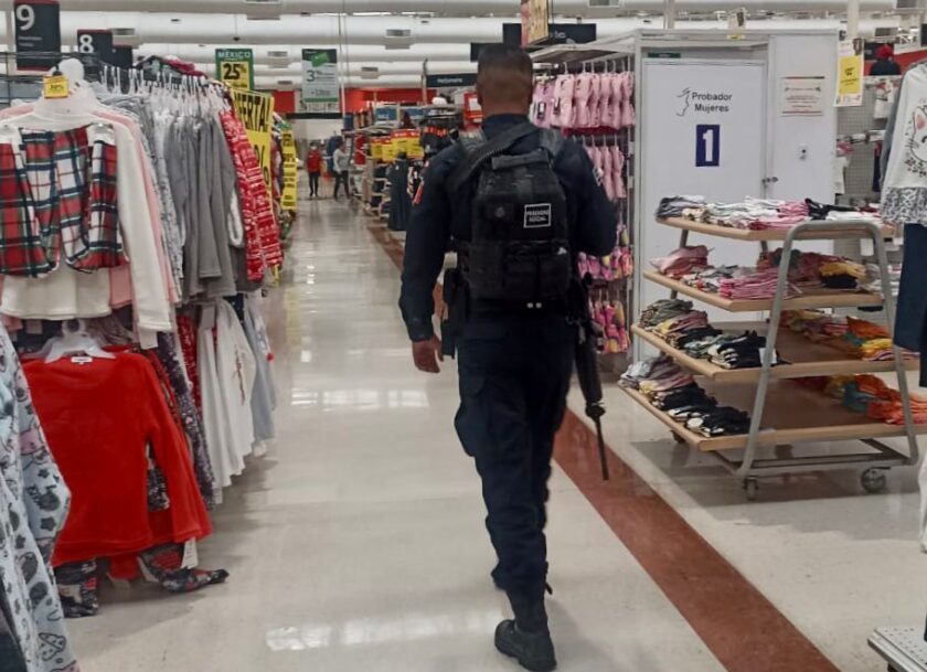 A través de un operativo específico, por instrucción del presidente municipal, Jorge Corichi, las y los elementos de la Policía realizan constantes patrullajes de seguridad en establecimientos comerciales de distinto tamaño.