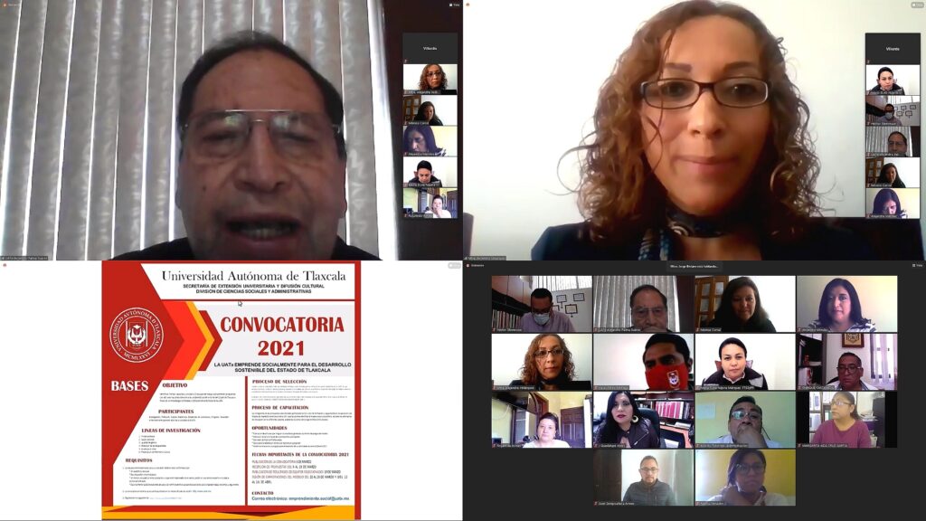 Para identificar, integrar, capacitar y vincular equipos de trabajo que presenten propuestas de alto valor colectivo en atención a problemáticas de la entidad, a través de la metodología del modelo de emprendimiento social de la Universidad Autónoma Tlaxcala (UATx), la Secretaría de Extensión Universitaria y Difusión Cultural, así como la División de Ciencias Sociales y Administrativas, presentaron la convocatoria 2021 “La UATx emprende socialmente para el desarrollo sostenible del estado de Tlaxcala”.