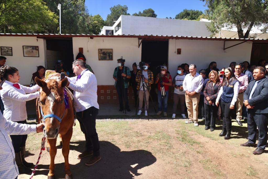 La gobernadora Lorena Cuéllar Cisneros y la presidenta honorífica del Sistema Estatal para el Desarrollo Integral de la Familia (Sedif), Mariana Espinosa de los Monteros Cuéllar, inauguraron el servicio de equinoterapia en las Unidades Básicas de Rehabilitación (UBR) estatales y municipales, con lo que serán beneficiadas niñas y niños con discapacidad.