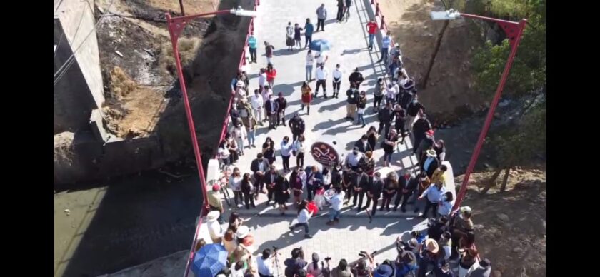 Al término del discurso, procedieron las autoridades al corte del listón y a la develación de dos placas alusivas a este evento, ambas colocadas de extremo a extremo del puente, con dedicatoria a su padre: “Gracias por inculcarme el amor y respeto por este bello municipio; por motivarme para iniciar y concluir con éxito esta obra, que te dedico con orgullo” y otra, con la leyenda: “si un hombre hace algo para sí mismo, no es recordado, pero si realiza algo para beneficio de los demás, deja un legado”.