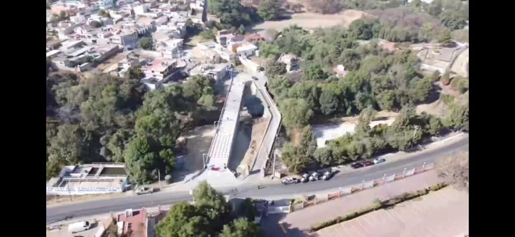 La magna obra funcional fue edificada con seis pilotes de 1.50 de diámetros y de 3.2 toneladas de acero que fueron hincados a una profundidad de 15 metros a partir del Nivel de Aguas Medio Extraordinario (NAME) que es el arroyo por el que atraviesa, por ello, fue necesario un volumen de 25 metros cúbicos para realizar el colado. Se colocaron las pilas de 2 toneladas de concreto y de 1.5 de diámetro, el cabezal se sustentó con 3 vigas de concreto tipo astón para salvar un claro efectivo de 20 metros lineales y obtener una superficie de rodamiento de 7 metros de ancho.