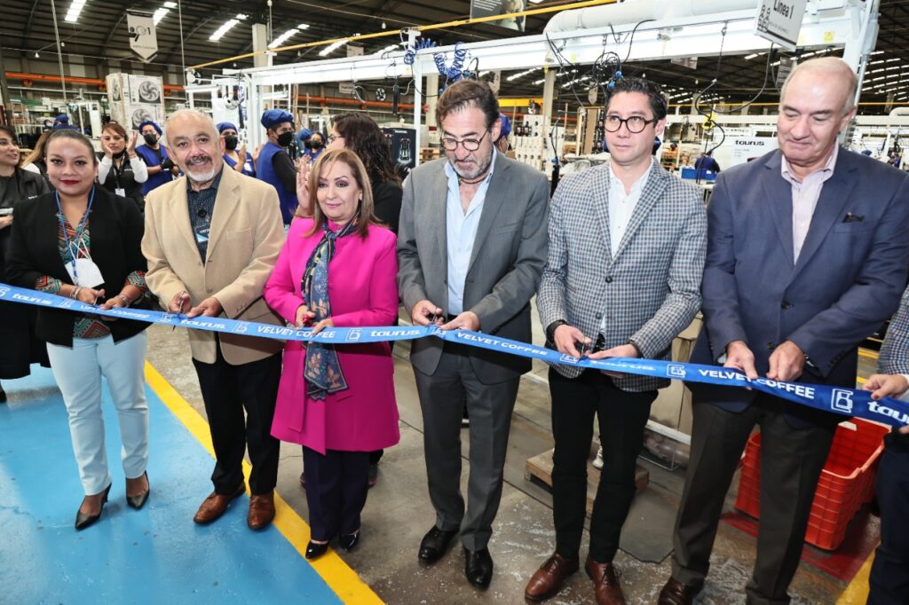 La gobernadora Lorena Cuéllar Cisneros inauguró la primera línea de ensamble de cafeteras en México de la empresa Taurus, localizada en el Corredor Industrial del municipio de Teolocholco.