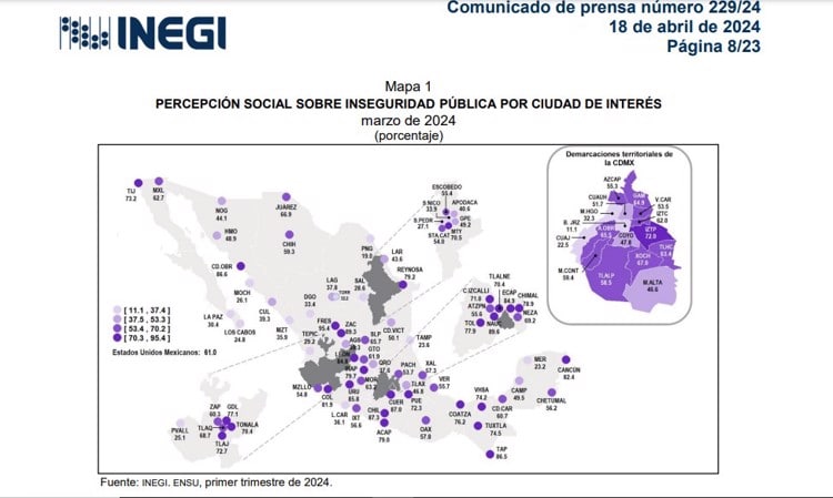 *La percepción de inseguridad aumento 3.5 puntos en Tlaxcala Capital durante el primer trimestre de 2024