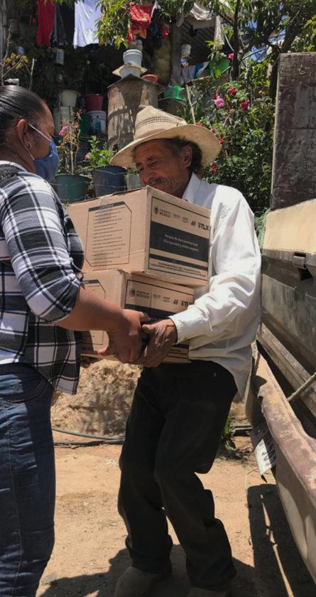 La Presidenta Honorifica del SMDIF, Reyna María Flores Álvarez, adquirió a través de DIF Estatal,  apoyos alimentarios para mitigar la situación económica que se ha originado a raíz de la emergencia sanitaria causada por el virus SAR CoV-2, y,  contando el respaldo total del alcalde Neptalí Gutiérrez Juárez, se logró beneficiar a personas vulnerables con despensas que incluyen una extensa variedad de productos para garantizar una adecuada nutrición, y con ello, prevenir enfermedades o desnutrición.