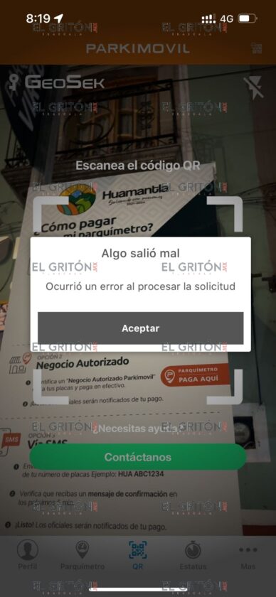 Al momento de escanear para dar la ubicación del vehículo y cumplir con la tarifa de siete pesos la hora, la aplicación o el código Qr muestran error de vinculación, lo que entorpece el proceso de pago.