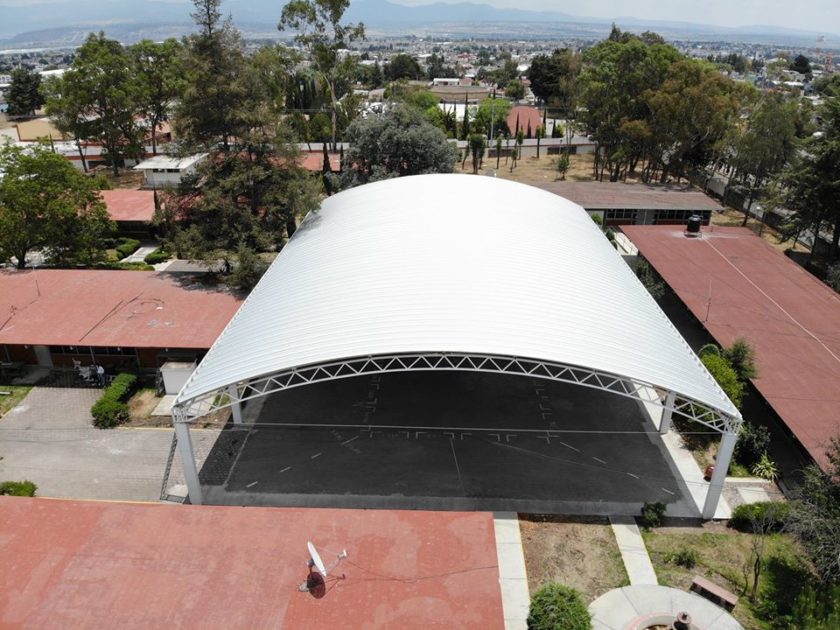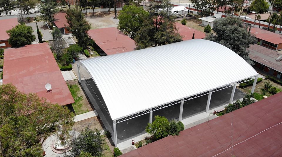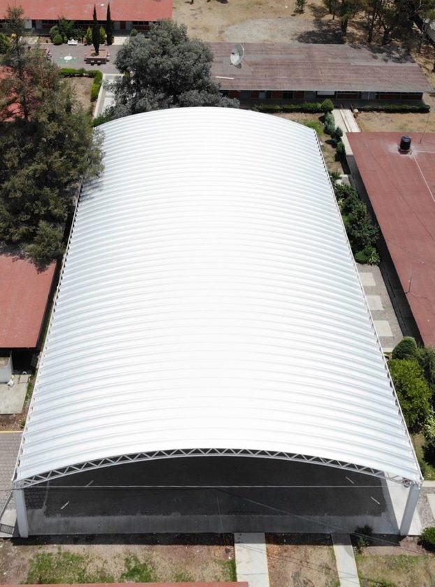 La obra que se ejecutó en su segunda etapa tuvo una inversión superior a los 1.2 millones de pesos y los trabajos que se realizaron en una superficie de 850 metros cuadrados fueron: suministro, fabricación y colocación de largueros; de cerchas de alma abierta a base de ángulo; lámina tipo “k”; y de canalón a base de lámina galvanizada calibre 10.