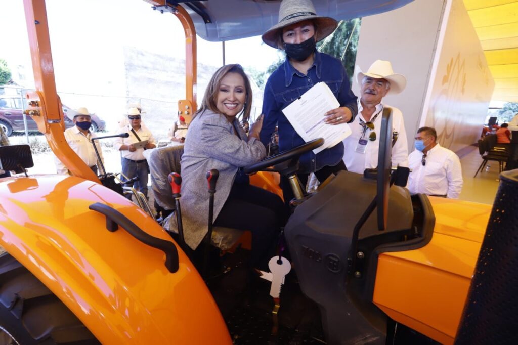 De manera simbólica, la gobernadora entregó las llaves de un tractor de 55 y 80 caballos de fuerza a Maribel Nezahualcóyotl Nava de Acuamanala y a Alejandro Flores Reyes de Calpulalpan; dos cartas de autorización para un módulo de producción de huevo y otra de maquinaria para la elaboración de alegrías con piloncillos a Adriana Vázquez Zorrilla de Xaloztoc y a Rosa María Téllez Huesca de Chiautempan, así como kits de herramienta agrícola.