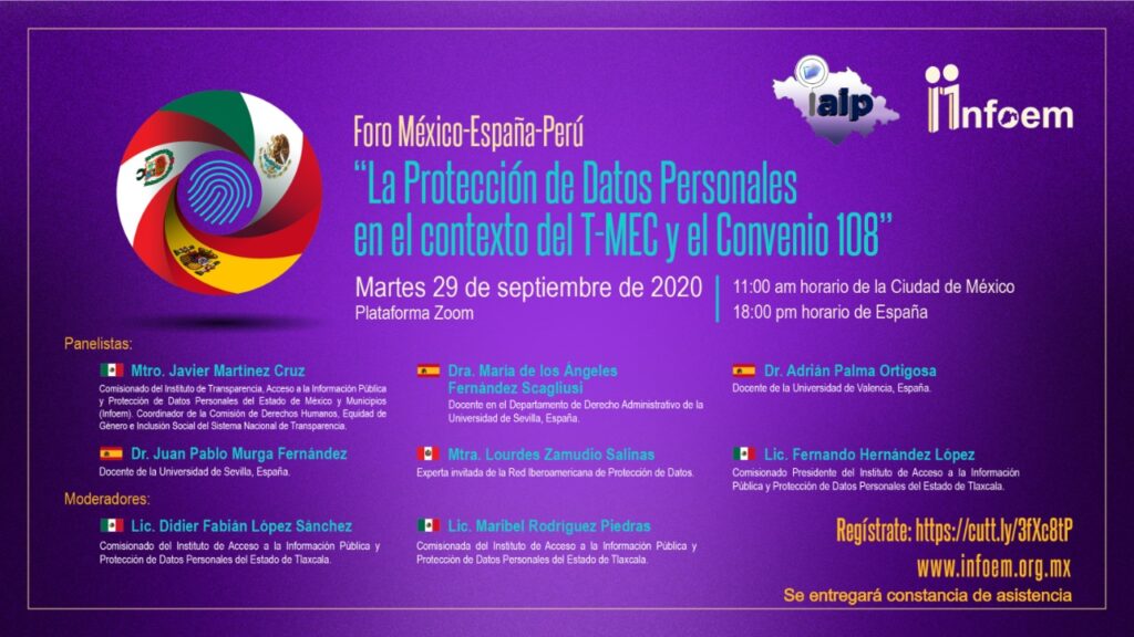 Con el objeto de analizar la protección de datos personales en el contexto del nuevo escenario comercial derivado del Tratado entre México, Estados Unidos y Canadá (T-MEC), el IAIP Tlaxcala realizará un foro con la presencia de panelistas internacionales de México, Perú y España.