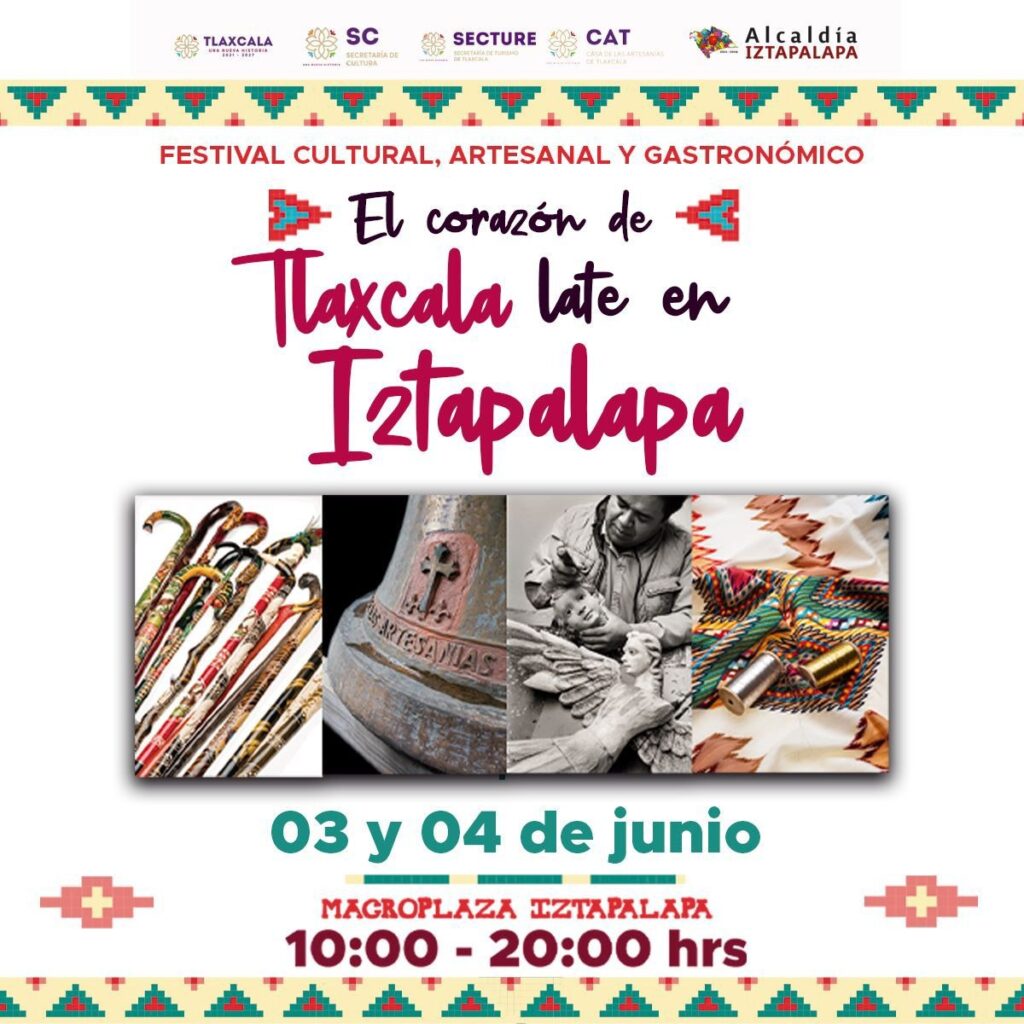 Con la finalidad de promover la riqueza del estado, a través de su artesanía, cultura y gastronomía, Tlaxcala estará presente los días 3 y 4 de junio en el festival “El Corazón de Tlaxcala Late en Iztapalapa” que se realizará en la Macro Plaza de este municipio de la Ciudad de México.