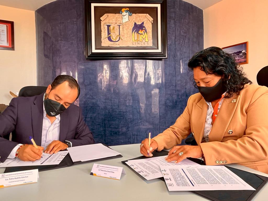 Siguiendo el compromiso con la educación, el presidente de Apizaco Pablo Badillo, encabezó la firma de convenio con la Universidad Metropolitana de Tlaxcala, que consiste en abrir las puertas del ayuntamiento para que los estudiantes de ciencias de la salud puedan realizar sus prácticas profesionales.