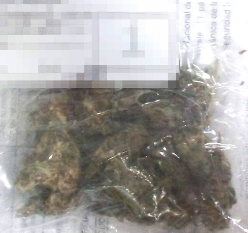 Tras mostrar una conducta reticente hacia la autoridad, elementos estatales se entrevistaron con la persona identificada como Enrique N., de 31 años de edad y mediante una inspección preventiva, localizaron un envoltorio de papel con hierba seca con características propias de la marihuana.
