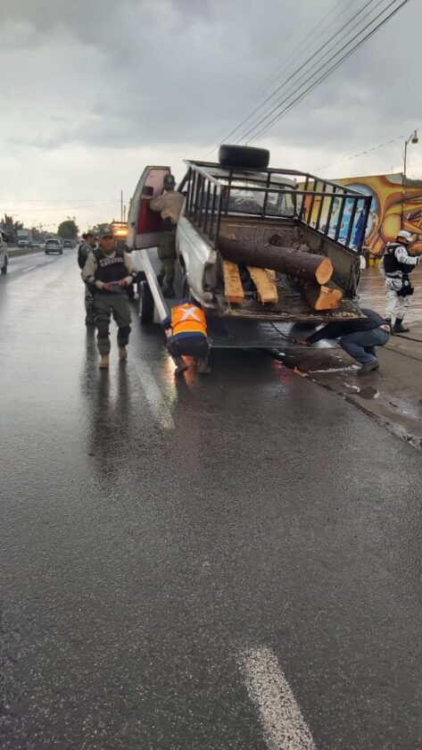 Motivo por el cual, se implementó un operativo pie tierra para la búsqueda del propietario o demás indicios; tras no encontrar a persona alguna, elementos de seguridad procedieron al aseguramiento de la unidad e indicios encontrados para ser puestos a disposición, mientras que el material forestal será presentado ante la Procuraduría Federal de Protección al Ambiente (Profepa) junto con el vehículo.