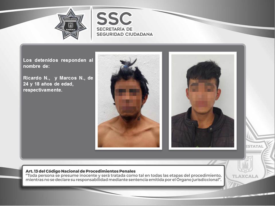• Mediante señalamiento directo por parte de pobladores, los sujetos fueron detenidos tras haber hurtado objetos de una escuela secundaria.