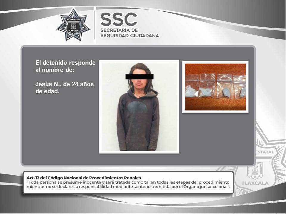 Elementos de la Dirección de Investigación perteneciente a la Secretaría de Seguridad Ciudadana (SSC) detuvieron este miércoles en el municipio de Huamantla a una persona quien portaba sustancias ilegales.