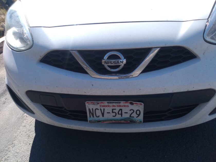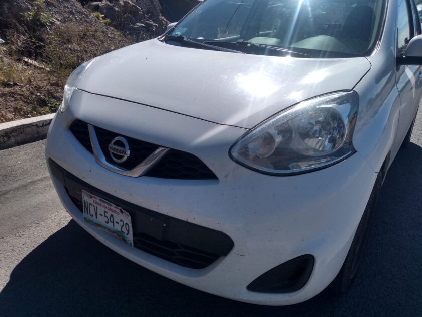 Elementos estatales recibieron un reporte por parte del Servicio de Emergencias 911, sobre el despojo de una unidad, Nissan tipo March color blanco con placas de circulación del Estado de México, en calle Reforma Sur, de la comunidad de Panzacola, municipio de Papalotla.