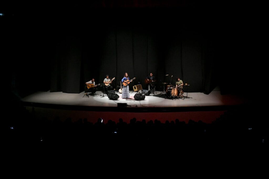 El Complejo Cultural Universitario, recinto emblemático de la Universidad Autónoma de Tlaxcala, ofreció un ambiente íntimo y una acústica excepcional que permitieron una conexión profunda entre la artista y el público, que respondió con aplausos y ovaciones durante toda la noche.