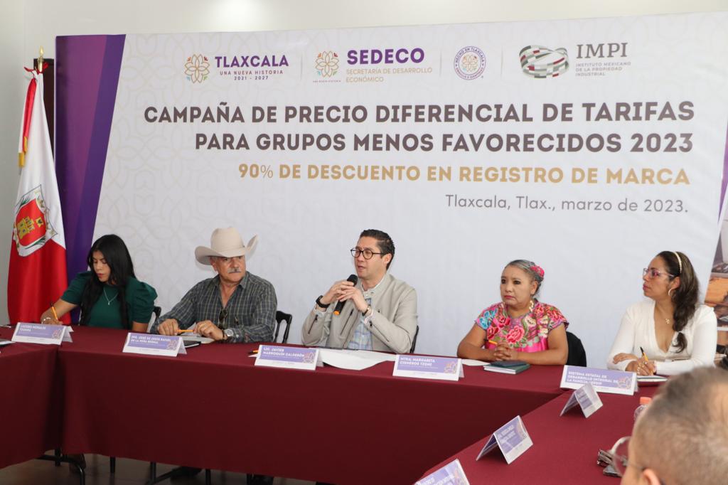 La Secretaría de Desarrollo Económico (Sedeco), en colaboración con el Instituto Mexicano de la Propiedad Industrial (IMPI), lanzó la convocatoria para acceder a un 90 por ciento de descuento en el registro de la marca de su producto o servicio, como parte de las acciones del gobierno del estado para apoyar a los grupos menos favorecidos en Tlaxcala.