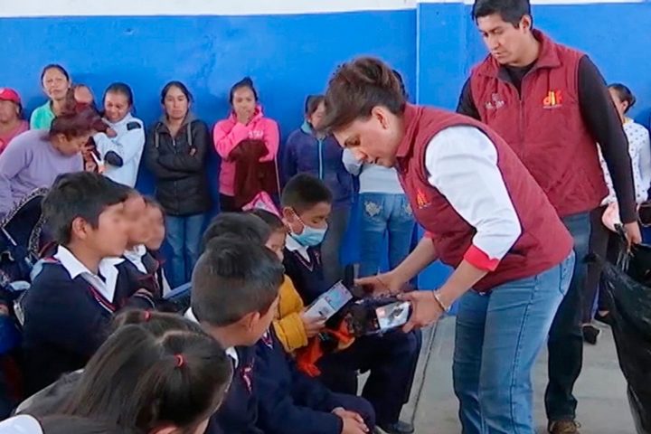 Como parte de la celebración, Sandra Chávez Ruelas convivió y entregó obsequios a estudiantes del Centro de Atención Múltiple (CAM) que incluyen un juguete, prendas de vestir abrigadoras, un libro para colorear y pinturas.