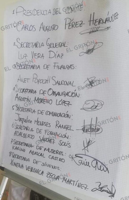 Del mismo modo, se eligió a la exdiputada local, Luz Vera Díaz, como secretaria general; a Anet Popocatl Sandoval, en la Secretaría de Finanzas; a Agustín Moreno, cómo secretario de organización y a Jaqueline Meneses, a cargo de la Secretaría de comunicación.