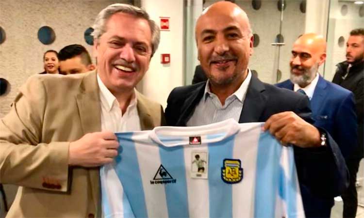 En tanto, el presidente electo venía preparado para la sorpresa y respondió el regalo al obsequiarle al diplomático mexicano una playera de la selección de futbol argentina.