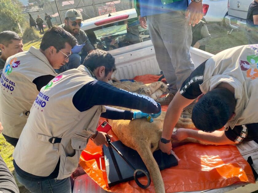 Por instrucciones de la gobernadora Lorena Cuéllar Cisneros, el personal del Zoológico del Altiplano se trasladó al predio localizado en la zona del Ajusco, para realizar revisiones veterinarias a los tres leones que posteriormente fueron trasladados a la entidad.