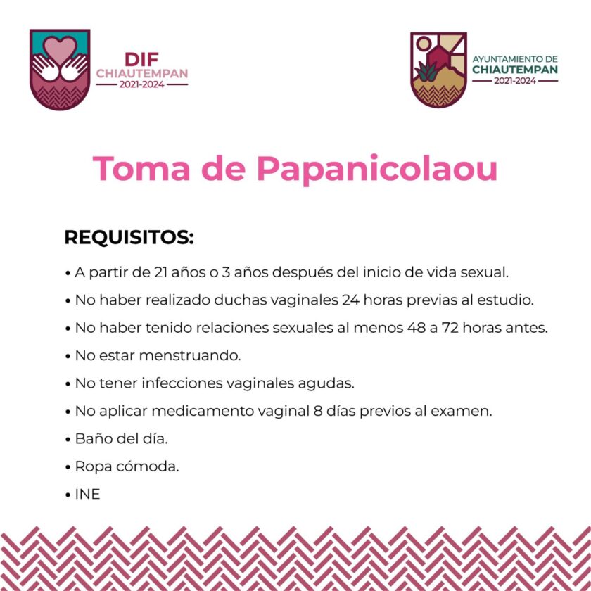 En el caso de la toma de Papanicolaou, entre los requisitos solicitados es que quienes apliquen tengan una edad a partir de 21 años o tres años después del inicio de la vida sexual.