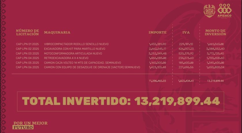 Rivera Bonilla expone ante la ciudadanía y las autoridades correspondientes, con responsabilidad, honestidad y veracidad en materia de transparencia, el manejo de los dineros en el municipio de Apizaco, donde el gobierno municipal que encabeza y dirige, NO le va a fallar a la ciudadanía, informando que, de este superávit, invirtió más de trece millones en maquinaria para obra hídrica, así como el excedente se aplicará en infraestructura para mejorar la calidad de vida de los apizaquenses.