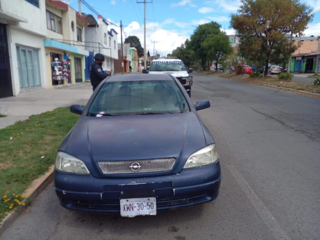 Más tarde, personal de la SSC aseguró en Apizaco un vehículo Chevrolet Astra, con placas de circulación XWN3050, el cual fue encontrado abandonado con huellas de desvalijamiento y una motocicleta marca Dazon 150 Cc, con alteraciones en sus medios de identificación, esto en Cuapiaxtla.