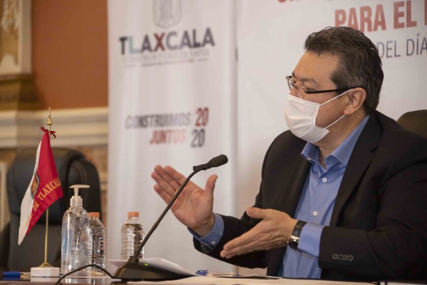 A través de videoconferencia, Marco Mena afirmó que el trabajo de los gobiernos locales es esencial para contener los efectos negativos de la pandemia de Covid-19 en materia económica, reducir el número de contagios y la movilidad de las personas, así como recuperar la capacidad productiva de Tlaxcala.