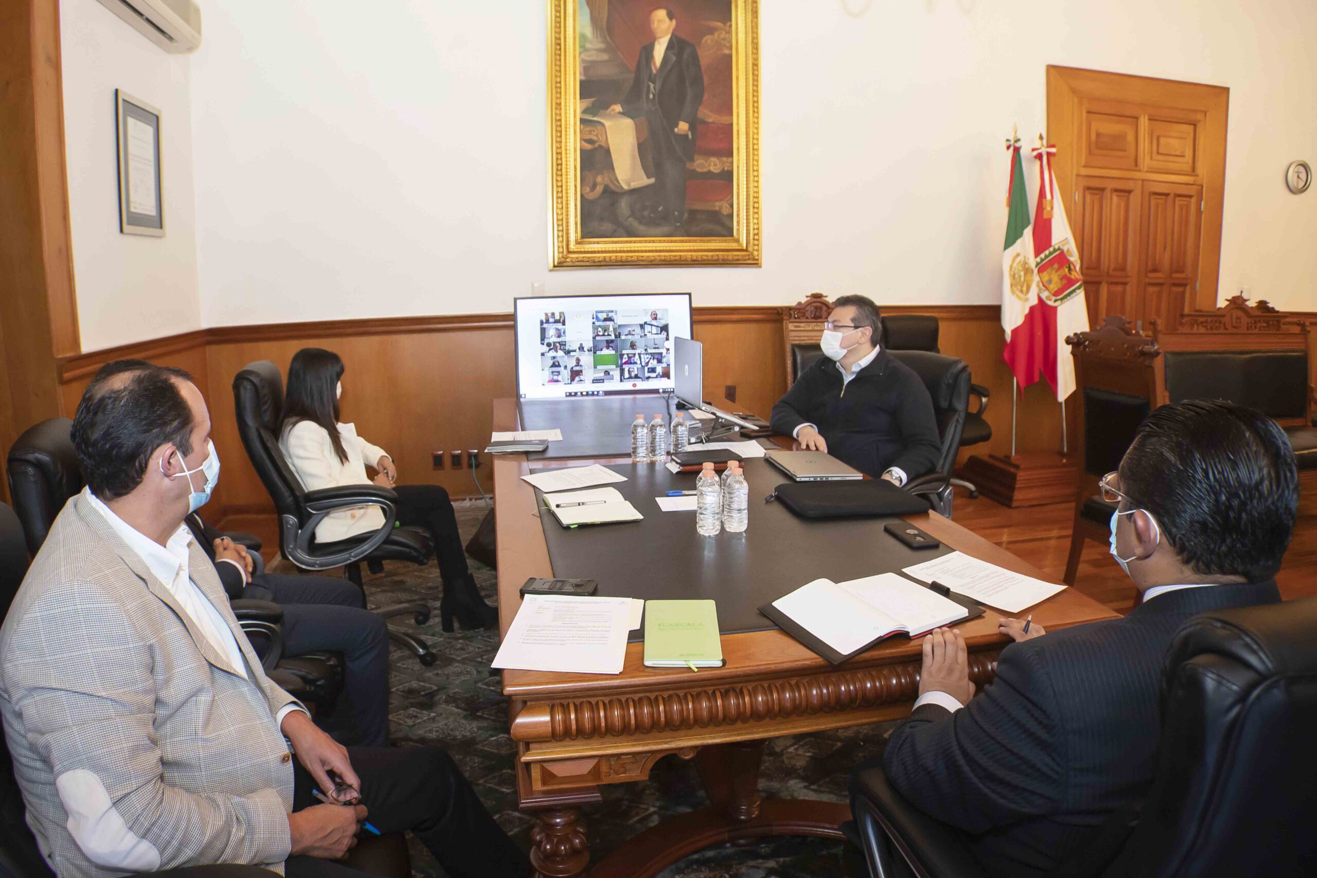 El Gobernador Marco Mena participó -a petición de la Comisión de Salud de la Conferencia Nacional de Gobernadores (Conago)-, en la reunión de seguimiento de la estrategia de vacunación contra Covid-19 del Gobierno Federal, con los secretarios Olga Sánchez Cordero, de Gobernación; Jorge Alcocer Varela, de Salud; y Miguel Torruco Marqués, de Turismo.