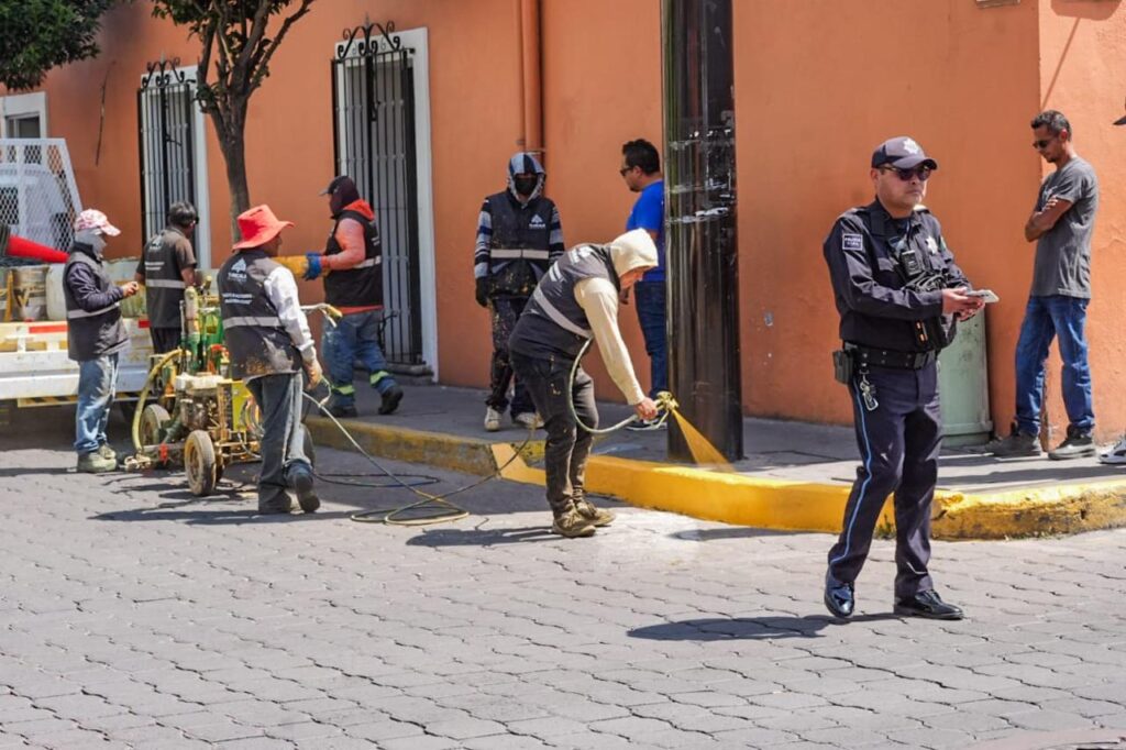 El Ayuntamiento de Tlaxcala, que preside Alfonso Sánchez García, a través de la Dirección de Obras Públicas, continúa con las acciones de mejoramiento urbano en tres distintos puntos de la capital a través de brigadas de “Menos escritorio y más territorio”, mediante la colocación de pintura en guarniciones de vialidades con alta afluencia peatonal y vehicular, como parte de la estrategia para rescatar la ciudad y mantener en buenas condiciones la infraestructura urbana.