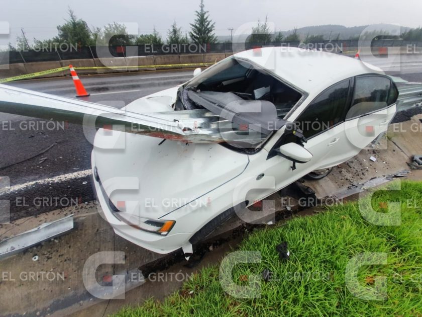 Trágica muerte encontró el conductor de un vehículo Volkswagen, tipo Jetta, al salirse de la cinta asfáltica y colisionar contra la valla metálica, lo que provocó que ésta atravesar su unidad y al conductor, incluso proyectó el cuerpo fuera de la unidad, la tarde noche de este miércoles en Hueyotlipan.