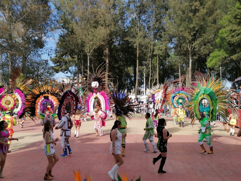 Capulac, Caritas Felices de Agrícola de Dolores, Matlalohcan, del Centro, Atexcatzingo, San Bartolome, del Centro, Atexcatzingo, San Bartolme Centro y In Tlanextli, fueron las 8 camadas que por varias horas se concentraron en la explanada de Plaza de las Américas, para deleitar a propios y extraños con sus diferentes atuendos y bailes representativos de cada lugar.