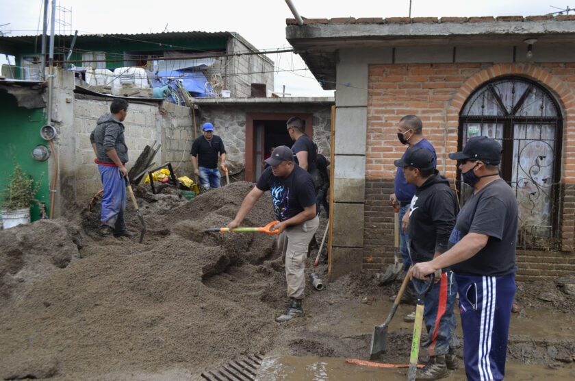 En este contexto, las brigadas de Protección Civil Municipal junto con personal de servicios municipales, obras públicas, desarrollo económico y seguridad pública, se distribuyeron entre las calles Yehualica, Popocatépetl, Cofre de Perote y Malintzi, para apoyar y remover los escombros de las casas de más de 34 familias que se vieron afectadas.