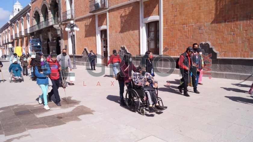 Un reducido grupo de personas con discapacidad se manifestaron a las afueras del Palacio de Gobierno, en espera de que la mandataria estatal, Lorena Cuéllar Cisneros, atendiera sus demandas en temas de movilidad, inclusión y apoyo por parte del Poder Ejecutivo.