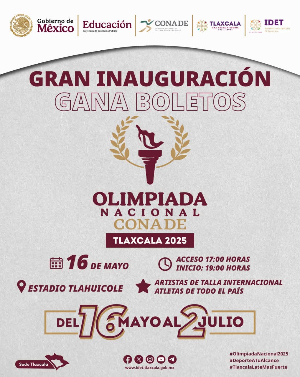 La inauguración oficial se llevará a cabo en el Estadio Tlahuicole, y se espera la presencia de delegaciones de todo el país.