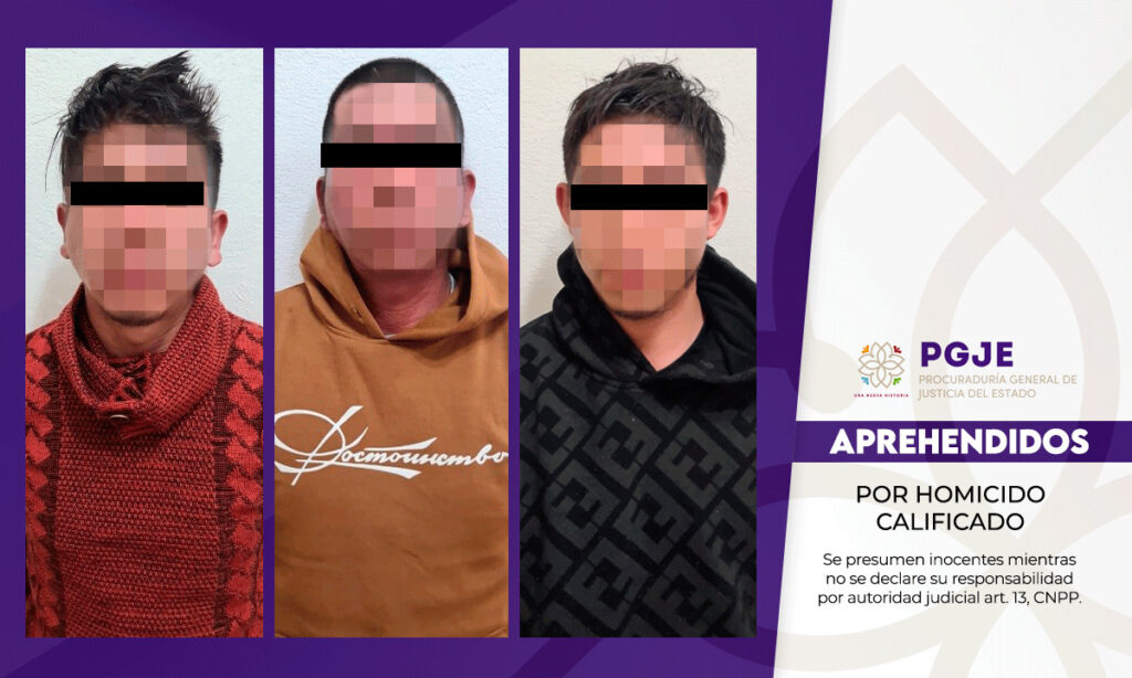 Resultado del trabajo coordinado de agentes del Ministerio Público, peritos y oficiales de la Policía de Investigación, la Procuraduría General de Justicia del Estado (PGJE) logró la vinculación a proceso de Juan Carlos N., Juan N., y Juan Gustavo N., señalados como presuntos responsables del homicidio de un hombre, en el municipio de Calpulalpan.