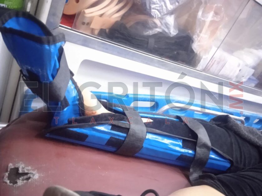 Por ello, acudieron policías municipales y paramédicos, estos últimos, brindaron los primeros auxilios a la víctima, la cual presentó fractura expuesta de tobillo y otras lesiones, por lo cual fue necesario su traslado al Hospital General de Tlaxcala.