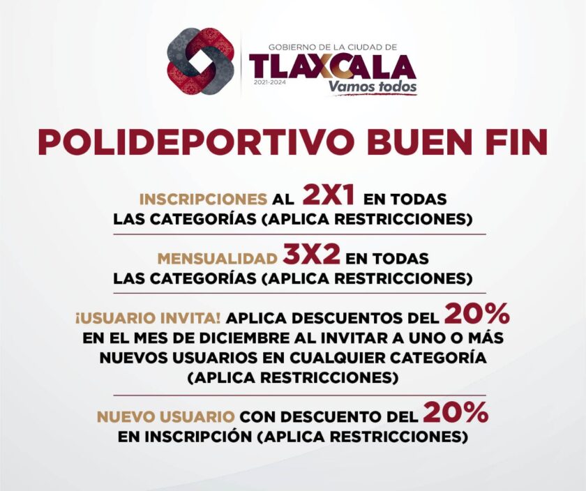 Otra de las áreas que participa con atractivos descuentos es el Polideportivo de la Capital, que ofrecerá 2×1 en inscripciones, 3×2 en el pago de mensualidades, descuentos del 20% a los usuarios que inviten a dos o más personas a inscribirse y 20% de descuento de nuevo usuario en inscripción. Dichas ofertas aplican a todas las categorías que ofrecen sus servicios en el centro deportivo.