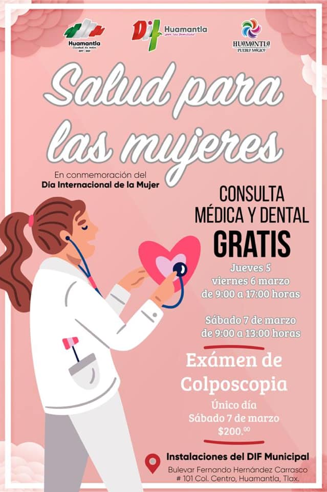 Huamantla, Tlax.- Con el objetivo de brindar apoyo a las personas de escasos recursos que requieren atención médica o dental, el Sistema DIF Municipal que preside Gabriela Escamilla Pérez, ofrece consultas médicas generales y dentales totalmente gratis, acciones que se desarrollan en el marco del día internacional de la mujer a conmemorarse el próximo 8 de marzo.